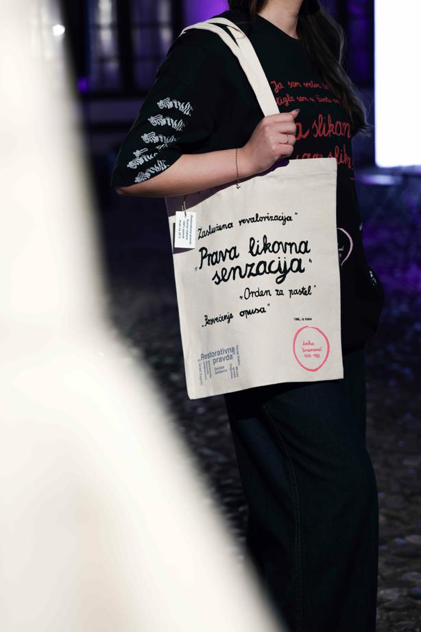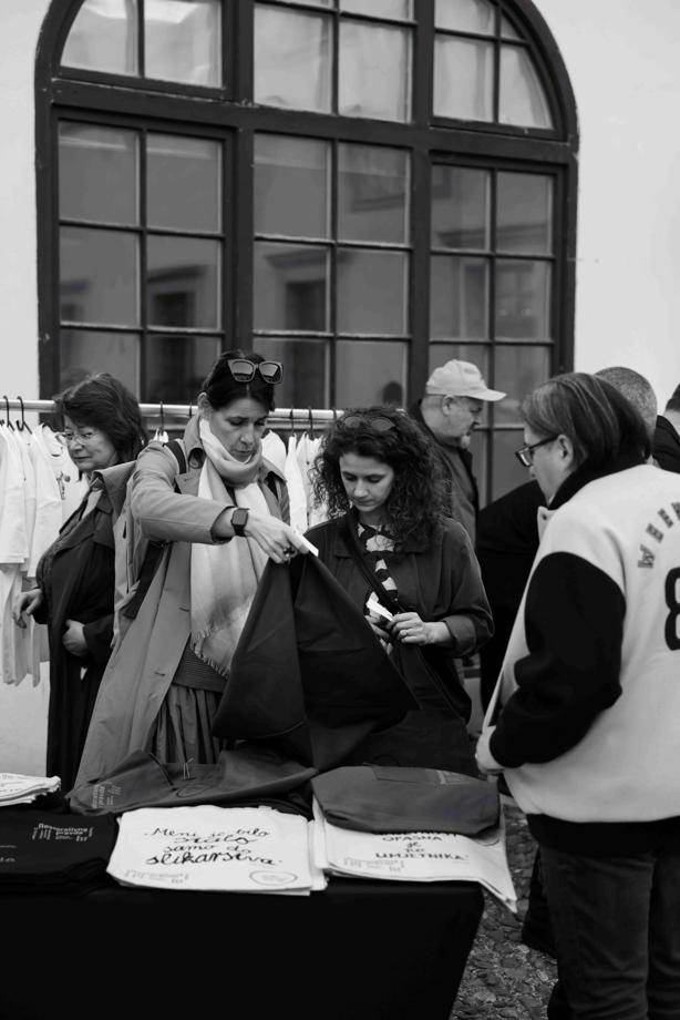 Sudionice aukcije imale su priliku kupiti unikatne, vrhunski izrađene majice i torbe nastale tehnikom sitotiska – autentične komade koji spajaju kreativnost, znanje i snažnu društvenu poruku. Proizvodi su inspirirani predmetima iz fundusa Muzeja grada Zagreba, kao i snažnim ženama koje su ostavile dubok trag u hrvatskoj kulturi i umjetnosti; Milkom Trninom, Ankom Krizmanić, Nastom Rojc i Žuži Jelinek.